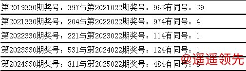 与前期历史同期奖号对比分析,在最近五年开奖中,第330期同期奖号与第022期同期奖号都出现了相同号码: